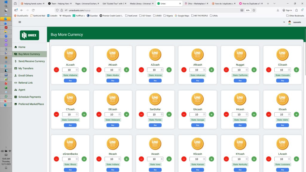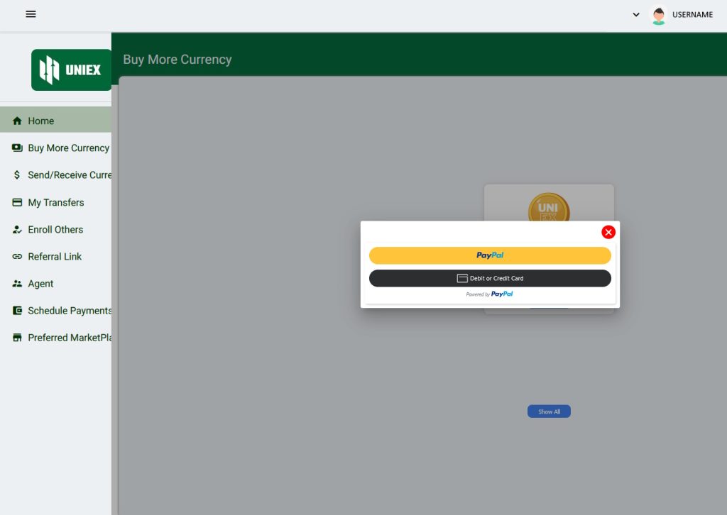Finally, be aware that if you want to purchase an item from the market place and don’t have sufficient currency in your UNIEX account, you can purchase more currency directly from the UNIEX bank. This is one of the major benefits of our marketplace in contrast to Craigslist. Not only can you purchase items online, but if you don’t have sufficient cash on hand (as required by Craigslist) you can use your credit card to buy an item on credit.