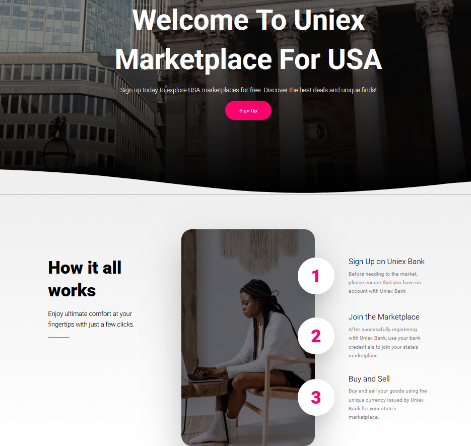 When you are ready to set up an account on the UNIEX bank, go to the Signup page. This what the Signup Page looks like.